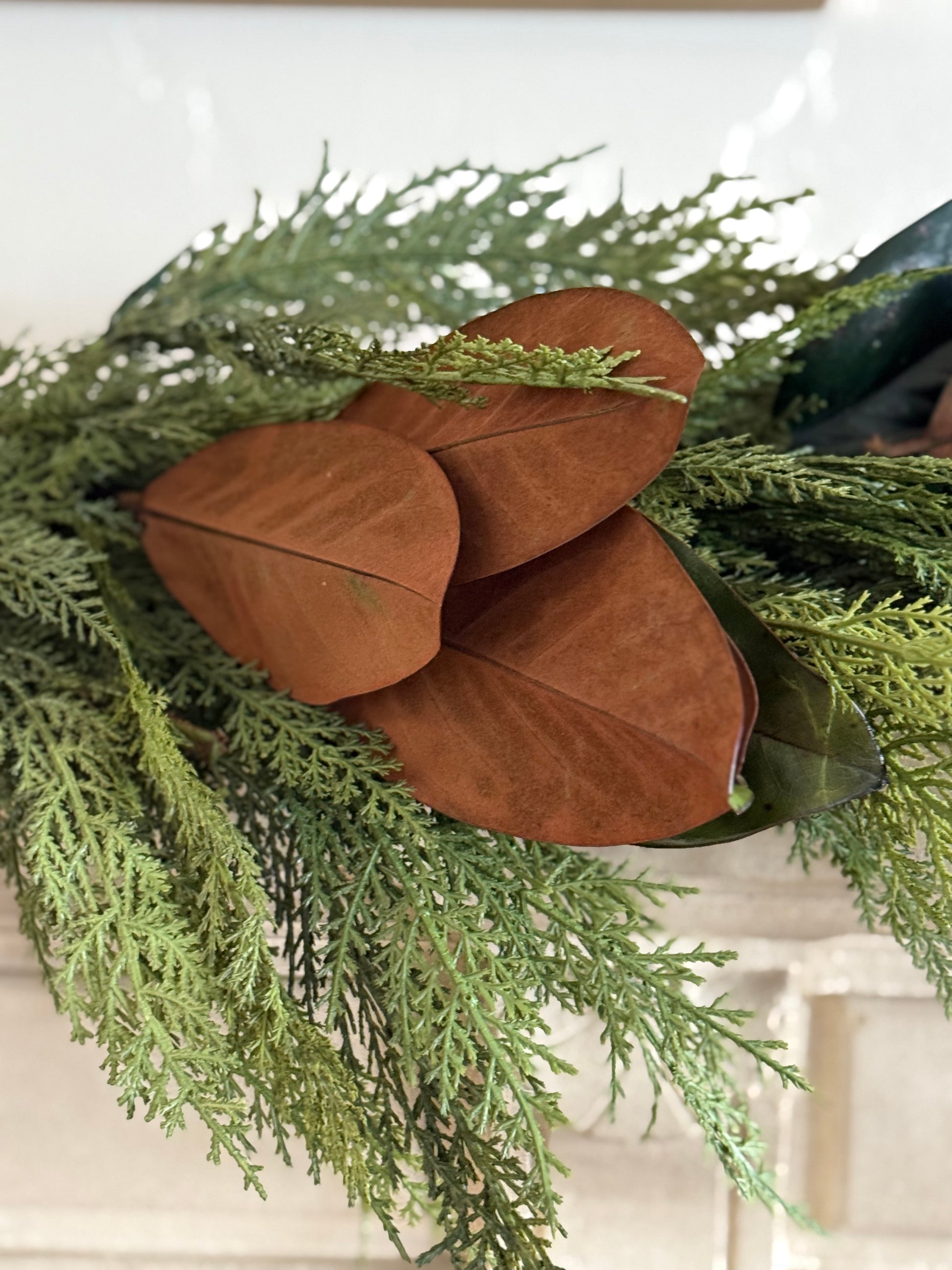 Each bundle includes three genuine magnolia stems, beautifully preserved to maintain their rich green leaves and velvety copper undersides.
