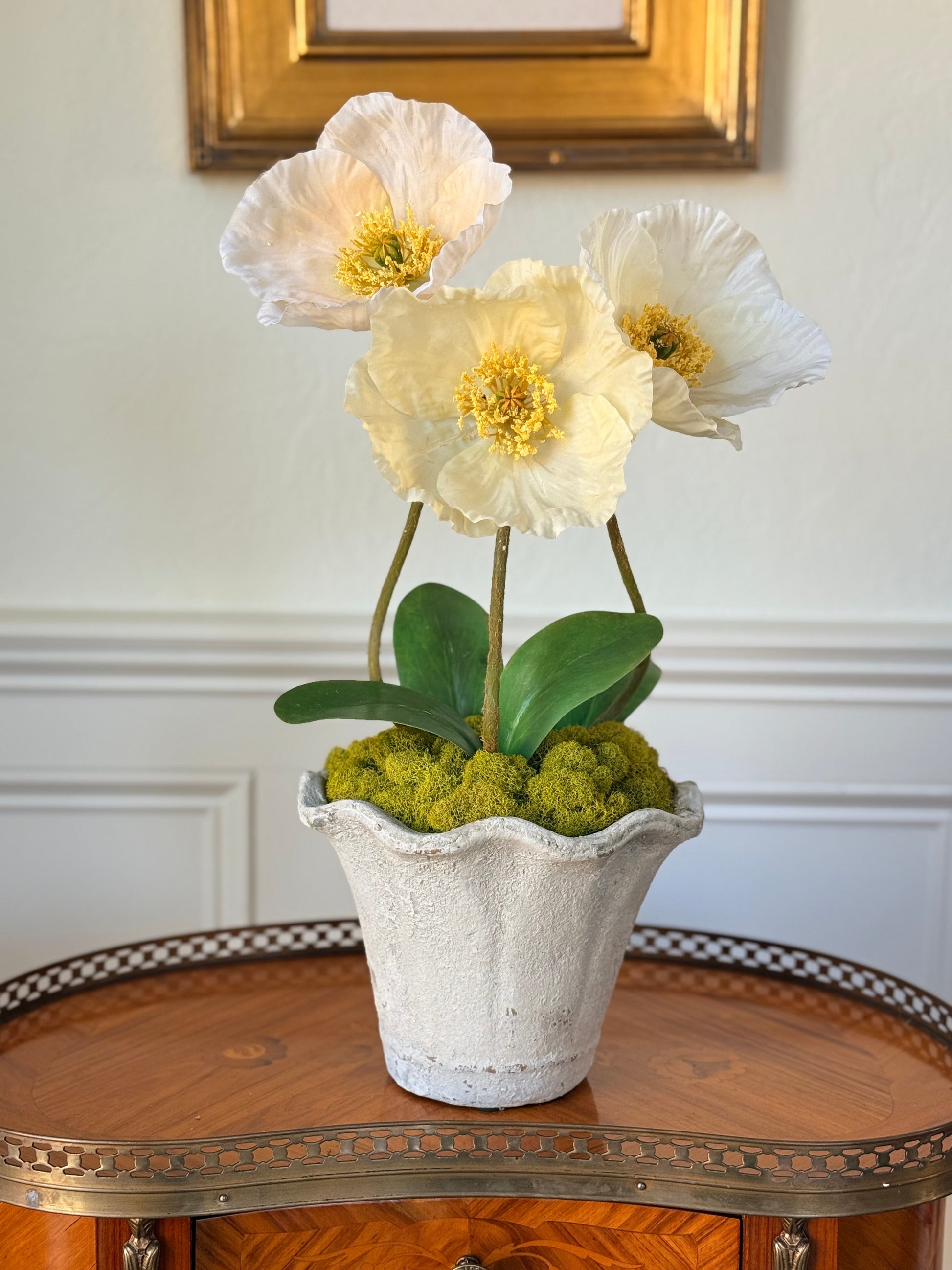 Scalloped Terra Cotta Pot + 3 Faux Mixed Cream Poppies